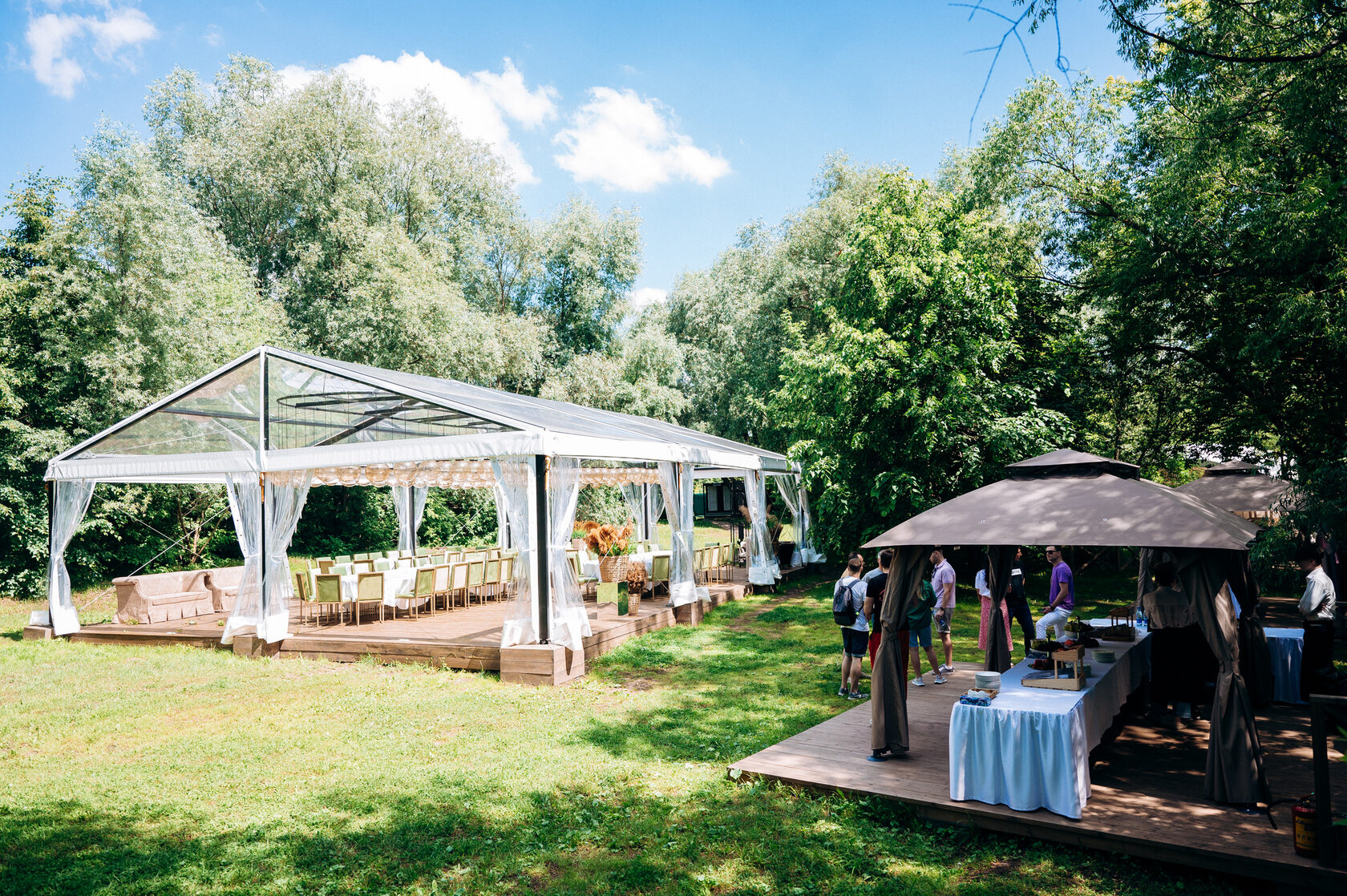 Можно, но мы не рекомендуем. Далеко не все кейтеринги способны поддерживать требуемый уровень сервиса и комфорта, тем более в условиях работы на природе. Наш проект был разработан совместно с GINZA PROJECT, одним из самых лучших ресторанных альянсов мира, так что мы готовы принять любой вызов и не видим необходимости в сторонних сервисах!